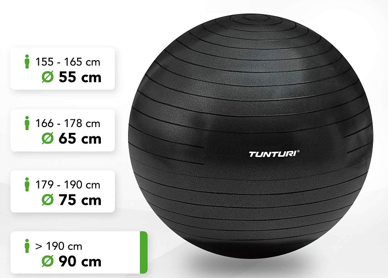 - průměr míče 90 cm: pro osoby měřící 190 cm a více