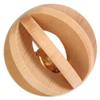 Dřevěný míček s rolničkou pro morčata a králíky. Průměr: 6 cm.