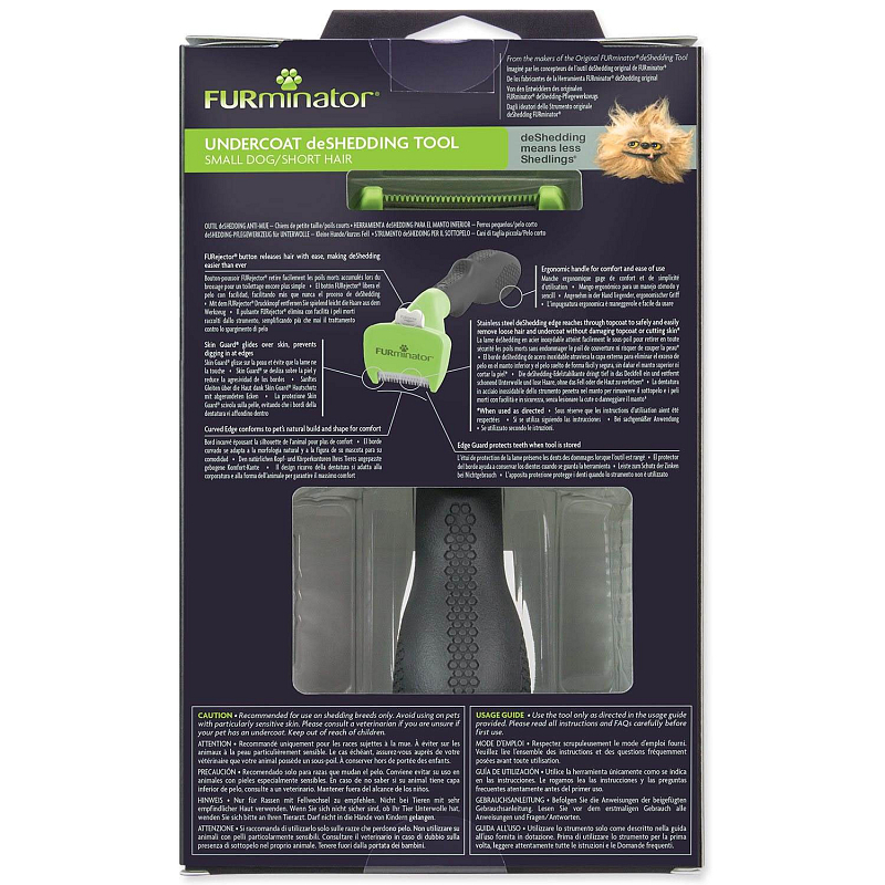 FURminator® hrablo k vyčesávání podsady psy malých plemen o hmotnosti do 9 kg s krátkou srstí.. Odstraňuje až 99 % uvolněných chlupů.