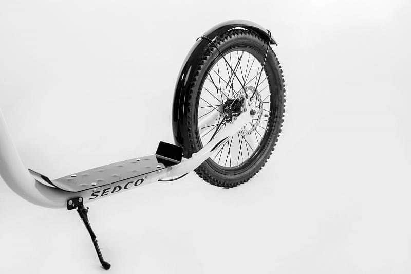 Nový model koloběžky 2018/19. Koloběžka Sedco Cross 4.2 se hodí pro aktivní koloběžkáře se sportovními ambicemi. S velmi odolným předním (26-ti palcovým) a zadním (20-ti palcovým) kolem snadno překonáte i terénní nerovnosti a díky zlepšenému stupátku využijete maximální délku odrazu a vaše nohy se tak snadno neunaví. S koloběžkou si však skvěle užijete i ve městě a stejně tak na zpevněných cestách. Koloběžka je vhodná pro mladší i starší jezdce s výškou 140 cm a více. Základem konstrukce koloběžky je vystužený pevný rám z alu slitiny, zajišťující maximální bezpečnost a jistotu při jízdě. Koloběžka skvěle dominuje i na mírně obtížnějším terénu. To hlavně díky pneumatikám s vysokou odolností a schopností vstřebat i tlumit vibrace při jízdě na obtížnějším povrchu. Skvěle tomu napomáhá i odpružená vidlice, která spolu s nafukovacími koly, tvoří skvělou kombinaci při redukování vibrací. Koloběžká disponuje spolehlivými mechanickými kotoučovými brzdami tvořenými ze slitiny hliníku a oceli. Vynikající jízdní vlastnosti a stabilita i při vyšších rychlostech jsou dány krátkou vzdáleností kol (rozvorem) koloběžky. Nášlapná plocha však zůstala dostatečně dlouhá a umožňuje i stání sounož.