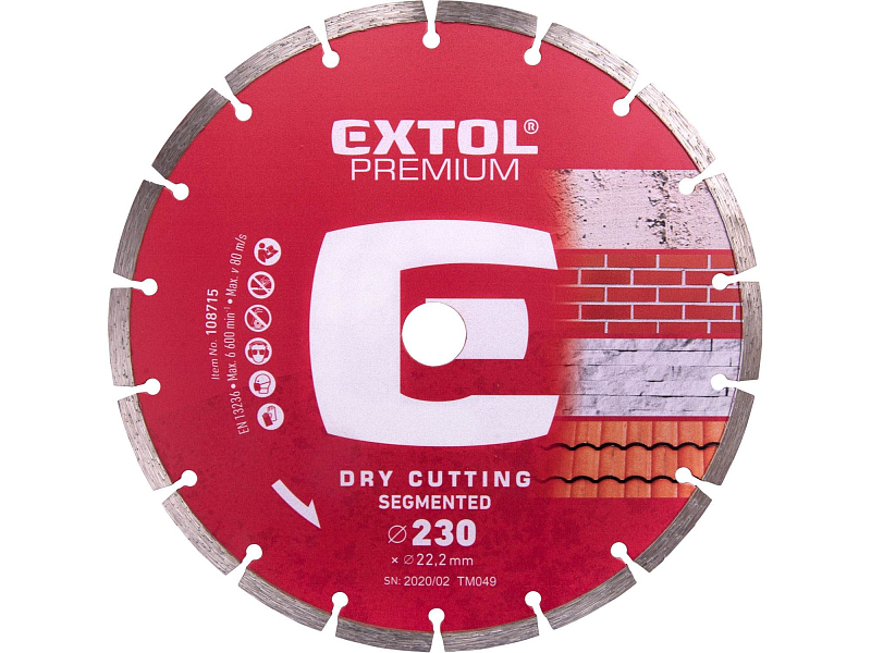 Popis produktu ZRUŠENO! Nahrazeno výrobkem 8803015 kotouč diamantový řezný segmentový - suché řezání, O 230x22,2x2,8mm