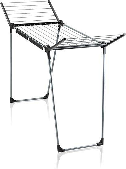 Stabilní sušák na prádlo s výklopnými bočnicemi, ideální pro vnitřní i venkovní použití, šířka sušáku je pouhých 55 cm, tudíž se s ním i v rozloženém stavu snadno manipuluje, 15 m sušící plochy = až 1,5 pračky prádla, výška sklápěcích bočnic 105 cm, možnost zavěšení dlouhých kusů oděvů, včetně 2 easyclipů na sušení drobného prádla, záruka 5 let, NOVĚ v luxusním černém provedení