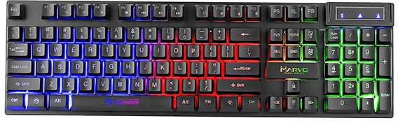 Klávesnice CZ/SK,herní,membránová,drátová(USB),černá,podsvícená;Antighosting a multimédia;voděodolné provedení; Počet kláves: 104; Hloubka stisku: 4.0 ± 0.3 mm; Síla stisku: 50 ± 7 g;Podsvícení: mix barev (rainbow);Připojení: USB 2.0;Délka kabelu: 1,5 m; Kompatibilní s: Windows 7 a vyšší