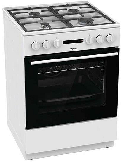 Kombinovaný sporák s multifunkční troubou, bílá barva, 4 plynové hořáky s pojistkami STOP GAS, vlevo vpředu O 5,4 cm, 1 kW, vpravo vpředu O 9,9 cm, 3 kW, vlevo vzadu O 7,4 cm, 1,9 kW, vpravo vzadu O 7,4 cm, 1,9 kW, LITINOVÁ dvoudílná mřížka STABIL PLUS, INTEGROVANÉ zapalování hořáků, multifunkční trouba – 11 způsobů ohřevu, rychlý předehřev trouby, program PIZZA, program pro HOTOVÁ A MRAŽENÁ JÍDLA, program HORKOVZDUŠNÉ FRITOVÁNÍ BEZ TUKU, ECO CLEAN – funkce na čištění trouby, regulace teploty v