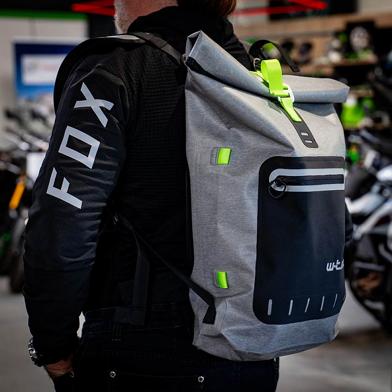 Nepromokavost je podpořena rolovacím systémem uzavírání, zatavenými švy a nepromokavými zipy kapes. Popruh pro zmíněné uzavírání lze upravovat dle obsahu věcí v batohu a posléze zajistit na těle batohu pomocí háčku. Pro rychlý a snadný přístup k drobným náležitostem disponuje batoh již uvedenou praktickou nepromokavou přední kapsou. Na kapse jsou také umístěny reflexní prvky, takže budete lépe viditelní i za zhoršených světelných podmínek.