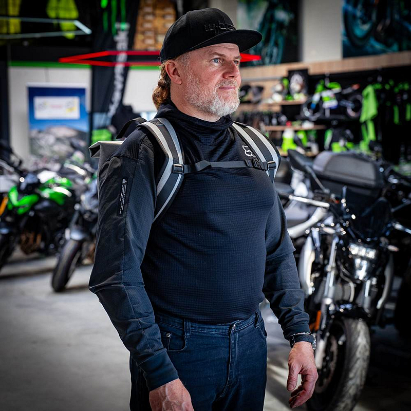 A jelikož batoh nemusí být použit jen na motocyklu, ale i na kole nebo při turistice, ve spodní části kapsy a také u zapínání a na bocích batohu najdete praktická poutka a očka například pro upnutí dodatečného zadního světla, karabinek s dalším vybavením, trekingových holí a podobně.
