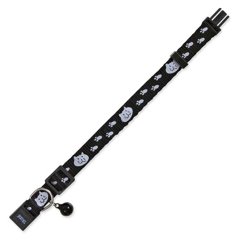Nastavitelný nylonový obojek s reflexní nášivkou a rolničkou.