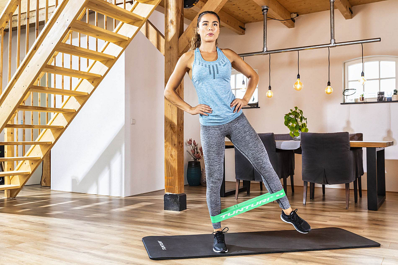Začněte s textilní gumou Tunturi pro efektivní a kompletní cvičení doma. Tento pohodlný, kompaktní a všestranný tréninkový nástroj je vhodný pro cvičení celého těla.