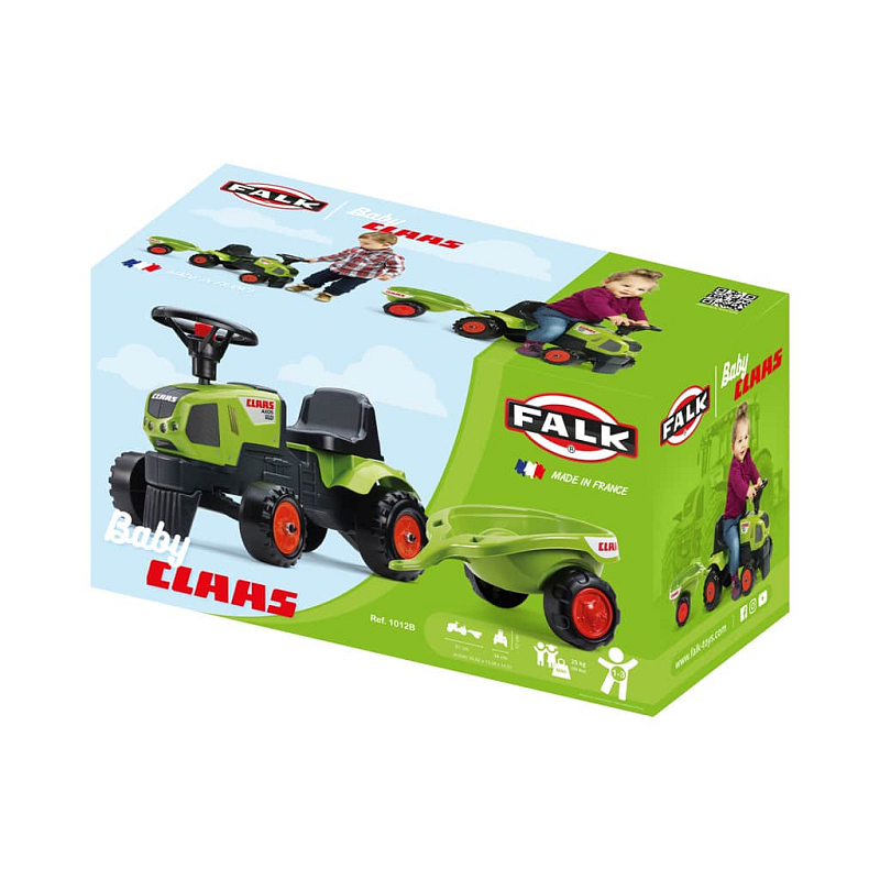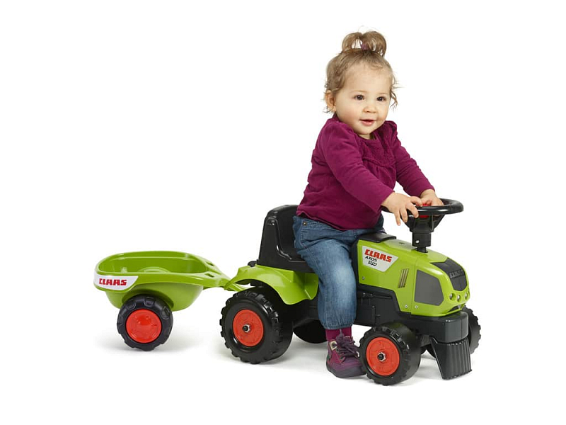 Odstrkovadlo – traktor Claas s volantem a valníkem. Z vysoce odolného a kvalitního plastu. Vyrobeno ve Francii. Testováno dle evropských norem na nosnost 50 kg. Rozměry traktoru: 97×30×37 cm