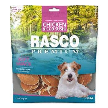 Ohodnoťte produkt Pochoutka Rasco Premium kuře a treska, sushi 500g