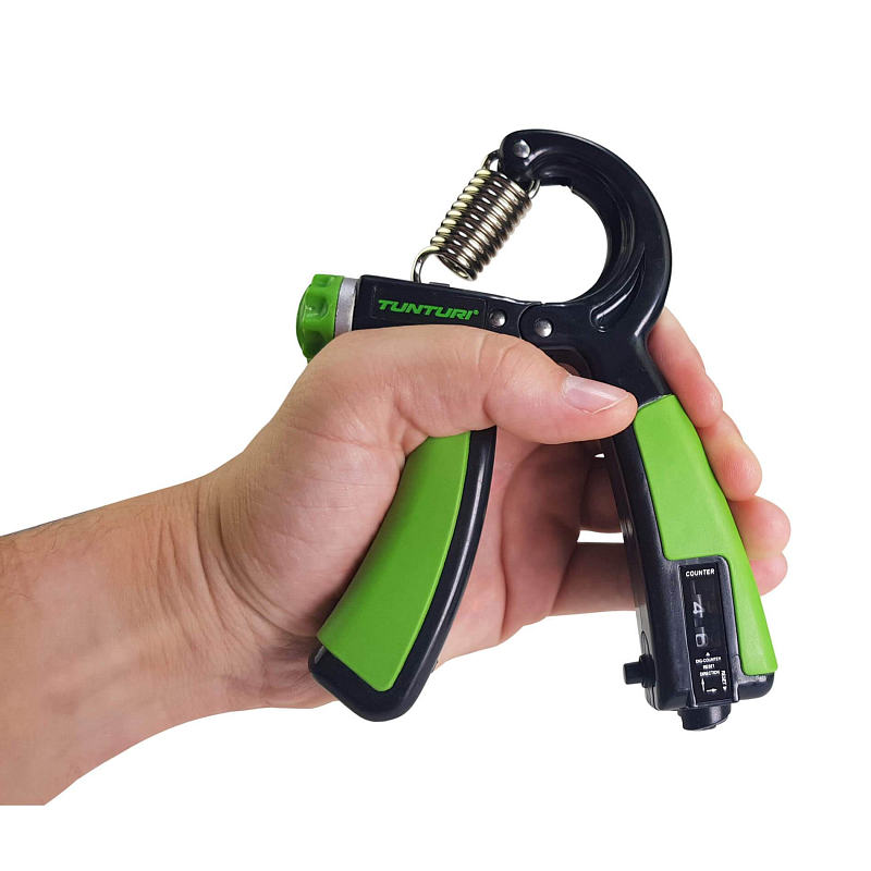 S těmito posilovacími kleštěmi Tunturi můžete snadno trénovat svaly rukou a paží. Stačí pevně stisknout rukojeť a opakovat to tak často, jak chcete. Rukojeť má zabudované počítadlo, které sleduje počet opakování, takže můžete svou pozornost zaměřit jinam. Například sledování televize nebo telefonování. Odpor lze nastavit v rozmezí od 10 do 40 kg. To se provádí pomocí speciálního tlačítka odporu. Sami se tak můžete rozhodnout, jak těžký trenažér chcete mít.