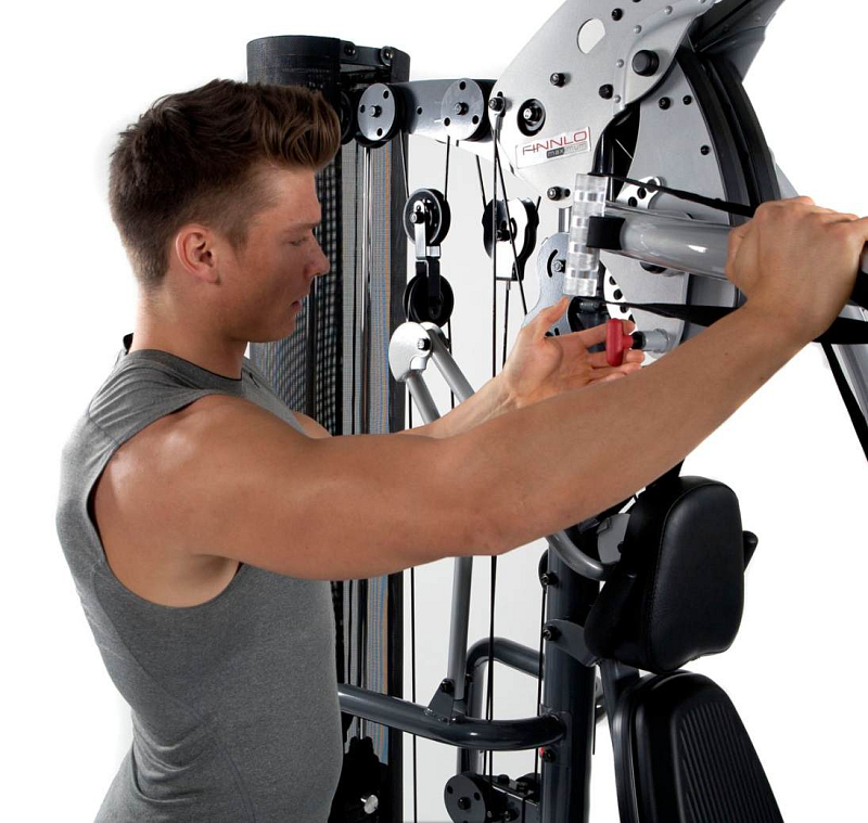 FINNLO MAXIMUM M3 multi-gym patří k vlajkové řadě MAXIMUM od známe značky fitness vybavení FINNLO určena pro domácí, ale díky své masivní ocelové konstrukci s kvalitním povrchem a nosností 150 kg dovoluje využívat tento stroj i v lehce komerčním prostředí jako jsou např. hotelové posilovky, wellness apod. Věž má výbornou mechanikou a ergonomií pohybu a umožnuje procvičit komplexně celé tělo, dále disponuje kladkami osazené ložisky a ocelové pojezdné lanko má ochranný potah proti opotřebování (lanka jsou testovány na nosnost 1000 kg). Sedlo je výškově nastavitelné a zádová opěrka je polohovatelná. Celkový chod stroje je zcela plynulý a tichý pro maximální komfort.
