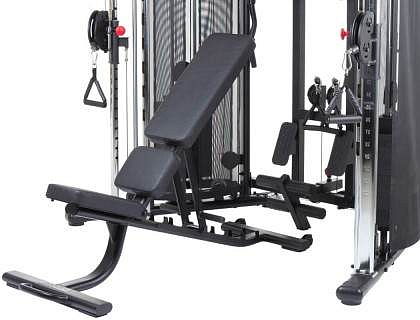 Nedílnou součástí Finnlo Maximum Autark 10.0 je posilovací lavice s nastavitelnou opěrkou zad, kterou lze přizpůsobit vašim cvikům (stupně nastavení: 0 °, 15 °, 30 °, 45 °, 60 °, 80 °, -15 °). Pomocí rukojeti a přepravním kolečkům lze lavici během chvilky správně nastavit nebo znovu odtlačit, aby nepřekážela.