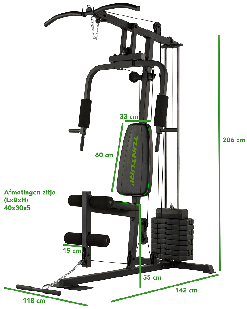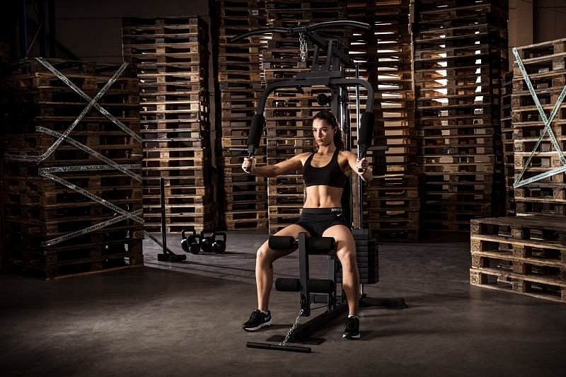 Základní posilovací věž vybavená zásobníkem s volitelným závažím v celkové hmotnosti 45 kg.