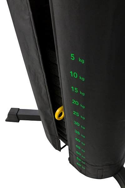 Kompaktní posilovací věž vybavená zásobníkem s volitelným závažím v celkové hmotnosti 60 kg.