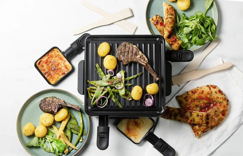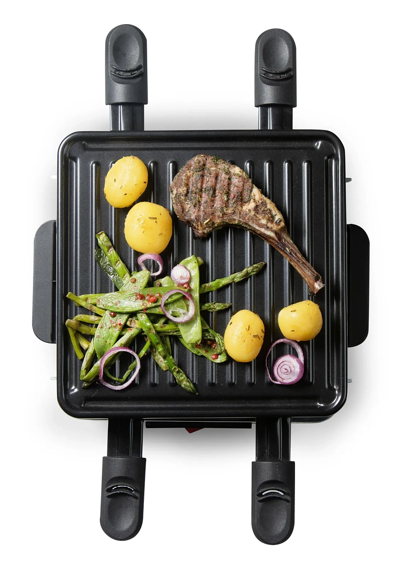 Kompaktní raclette gril určený až pro 4 osoby.