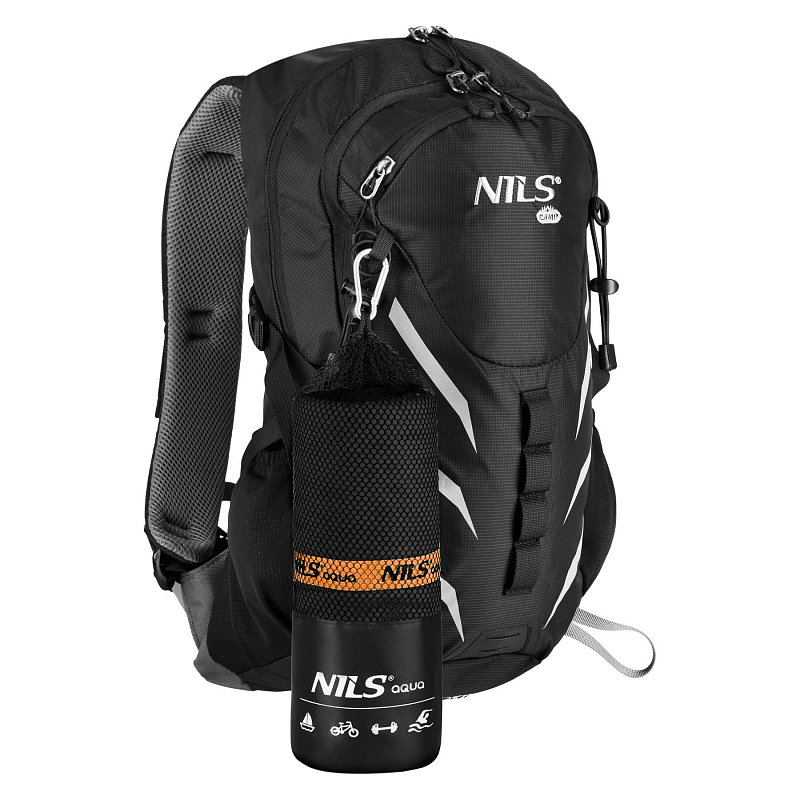 Ručník z mikrovlákna NILS aqua NAR12 černý/oranžový