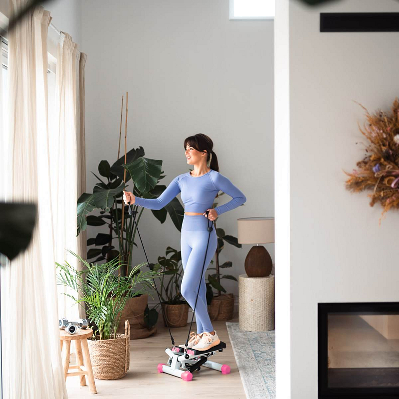 Malý a elegantní stepper, s kterým díky pravidelnému cvičení můžete získat elegantní, štíhlé a pevné hýždě. Výhodou tohoto modelu je možnost nastavení výšky kroku. Pohodlné cvičení poskytují široké neklouzavé nášlapy. Pravidelný trénink na stepprech urychlí spalování tuků na stehnech, bocích a kolem pasu. Trénink dále posiluje svaly kyčle, stehna (D quadriceps a biceps), svaly dolní končetiny, hýždě a břišní svaly. Cvičení na těchto strojích jsou vhodné pro ženy a muže všech věkových kategorií. Jde o efektivní a rychlé spalování tuků a zároveň posilování svalů a práci na zlepšení kondice.