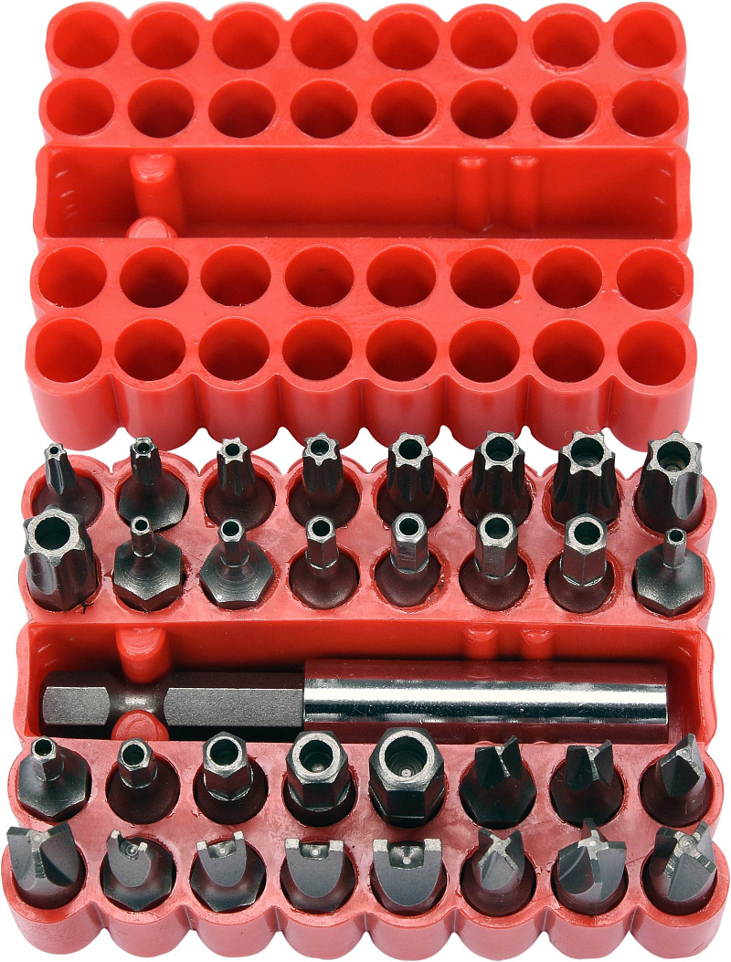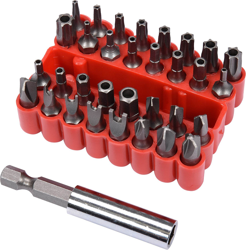 Sada bezpečnostních bitů. Jsou vyrobeny z chrom-vanadiové oceli CrV. Vše je uloženo v praktické, plastikové krabičce, takže vše máte ihned při ruce.