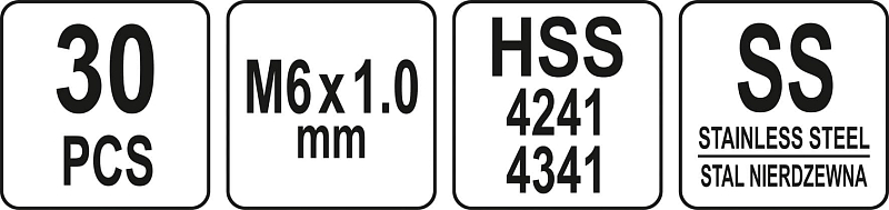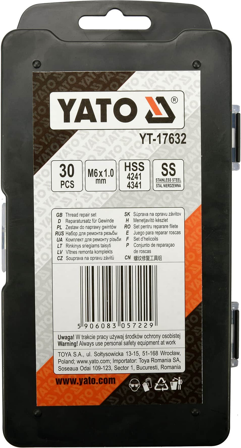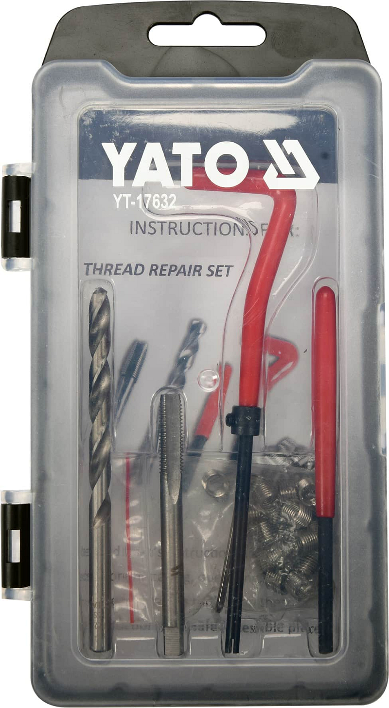 Opravná sada poškozených metrických závitů je určena všude tam, kde při poškození závitu nelze použít šroub jiného rozměru, než byl původní. Dále lze závitové vložky využít pro výztuhu závitů v materiálech s nízkou pevností ve střihu např. alu nebo hořčíkové slitiny. Obsah je vrták, závitník, zavádeč, vyrážecí trn a závitové vložky z nerezové oceli. Vložek M6 x 1 mm je v balení 25 kusů • Pro jmenované závity dodáváme náhradní závitové vložky • Objednávací číslo YT-1765 závitM6 x 1 mm počet kusů (ks)30 materiálstainless steel HSS 4341