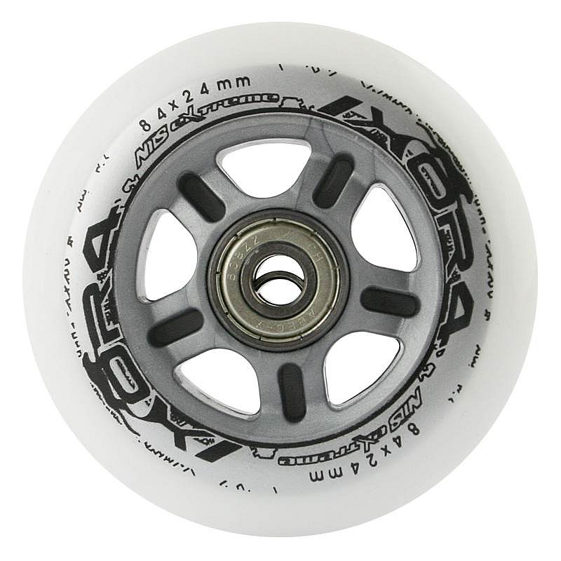 Náhradní sada koleček velikosti 84x24 mm mléčné barvy a tvrdostí 82 A s ložisky ABEC 7. Parametry: Rozměr: 84x24 mm Ložiska: ABEC 7 chrome Tvrdost: 82 A Balení: 4ks koleček + 8ks ložisek