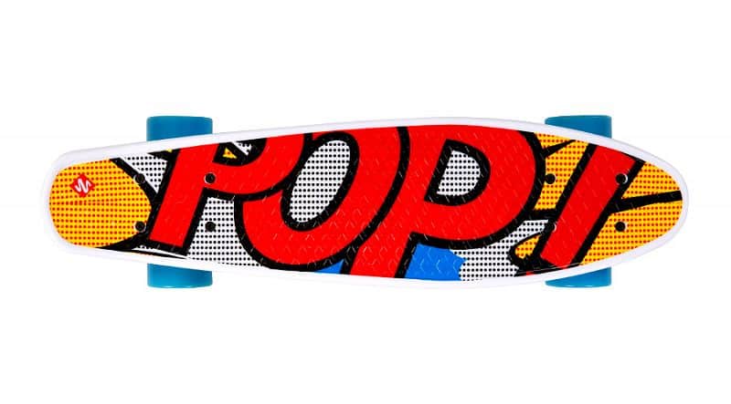 Jedinečný design tohoto skateboardu našel inspiraci v pop kultuře šedesátých let minulého století. Tehdy vznikl nový umělecký směr - Pop Art. Originální POP BOARD je stvořen pro zábavu a snadnou jízdu. Vyndej ho z batohu a jeď.