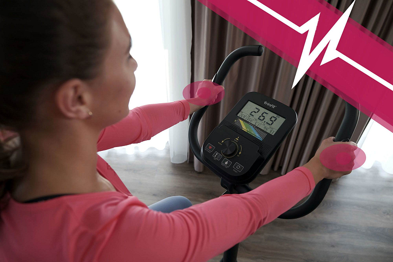 Pro maximální efektivitu tréninku můžete využít měření tepové frekvence skrz dlaňové snímače tepové frekvence (tzv. Hand pulse) na madlech trenažéru.