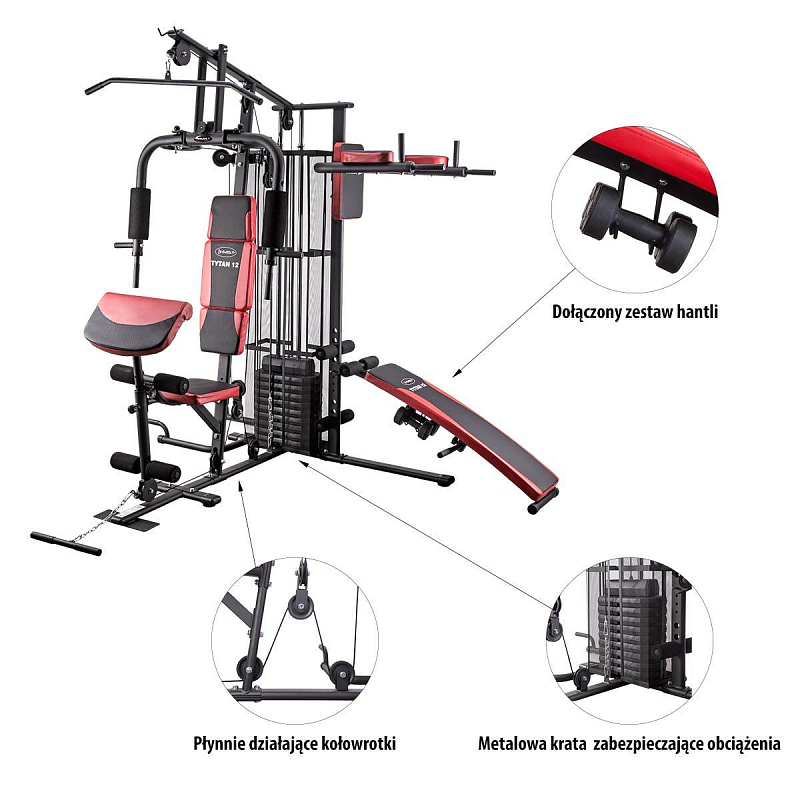 HMS Tytan 12 je moderní, posilovací věž pro komplexní silový trénink v domácím prostředí. Základ konstrukce tvoří sada závaží, která se skládá z 9-ti cihel o hmotnosti 7 kilogramů a z horní cihly o hmotnosti 5 kilogramů, celková hmotnost závaží tedy je 68 kilogramů. Sada závaží je pro maximální bezpečí krytá drátěnou klecí. Zátěž je pomocí sady kladek s ložisky a ocelových lan rozváděna k jednotlivým aktivním prvkům: