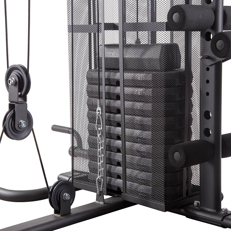 Sedáky a opěry věže HMS Tytan 12 jsou vyrobeny z vysoké vrstvy pěny ukryté pod extra pevným polstrováním v moderním, carbonovém vzhledu. Hlavní zádovou opěru tvoří 3 samostané panely pro pevné s pohodlné fržení těla. Tytan 12 nabízí komplexní trénink téměř všech svalových skupin. Ocelová konstrukce má nosnost 110 kilogramů.