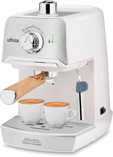Espresso pákový kávovar Ufesa Cream CE7238; Pákový kávovar CREAM disponuje 20barovým tlakovým čerpadlem, které zajišťuje konstantní a nepřetržitou extrakci kávy.; Přístoj je kompaktní a elegantní a zároveň poskytuje dotek elegance a odlišnosti, stejně jako vynikající kávu