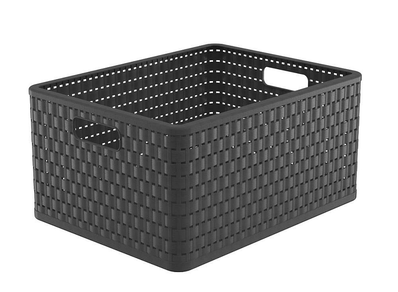 Plastový úložný box ve styluratanového výpletu. Široké využití vcelé domácnosti. Moderní design a kvalitní provedení. Objem boxu 28L. Úchytkypro snadné přenášení.