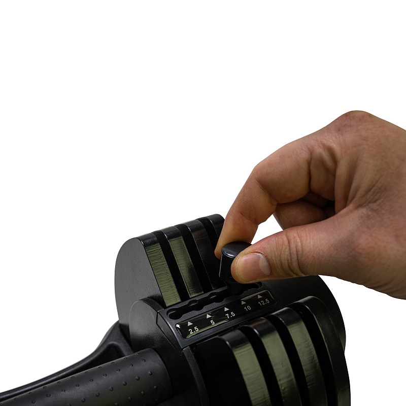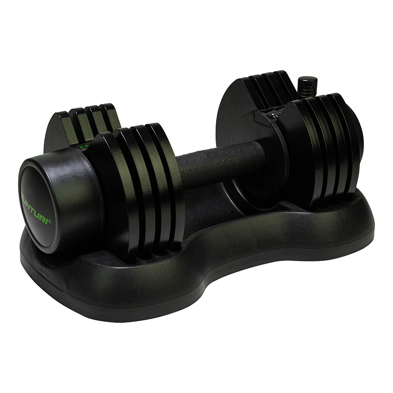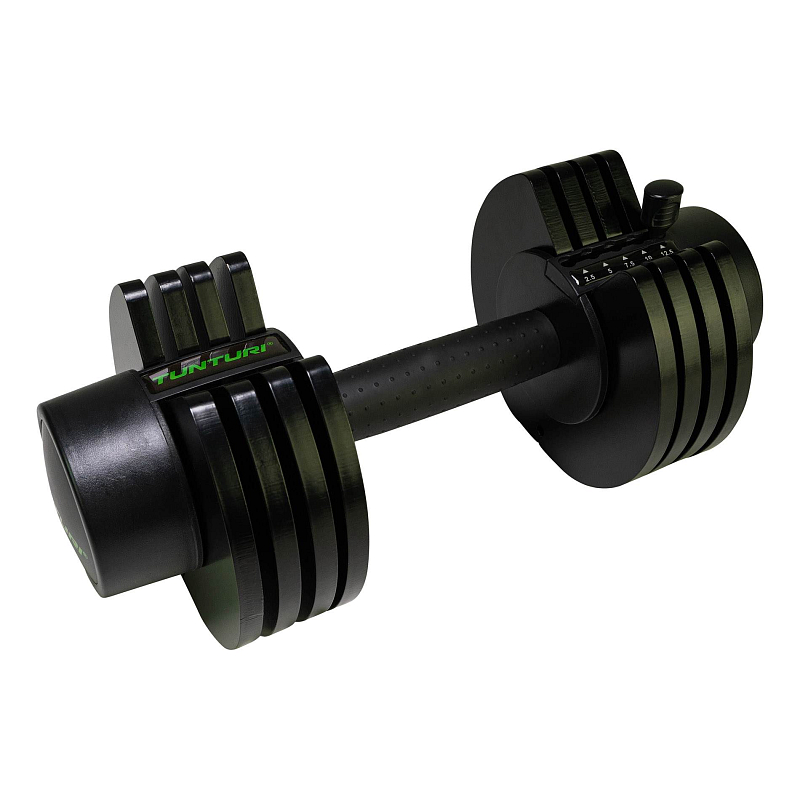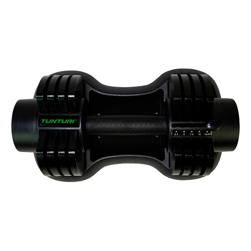 Nemusíte si kupovat více činek, abyste mohli cvičit s různými váhami. Jediné, co skutečně potřebujete, je činka Tunturi Selector. Pomocí stejné činky můžete cvičit se závažími o hmotnosti 2,5 až 12,5 kg. Díky pěti nastavitelným hmotnostem (2,5 - 5 - 7,5 - 10 - 12,5 kg) je činka vhodná pro každou úroveň.