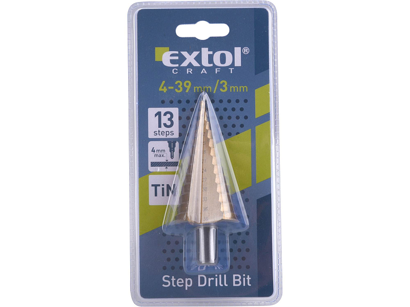 vrták stupňovitý, O 4-39mm/po 3mm, HSS